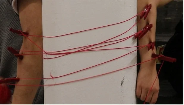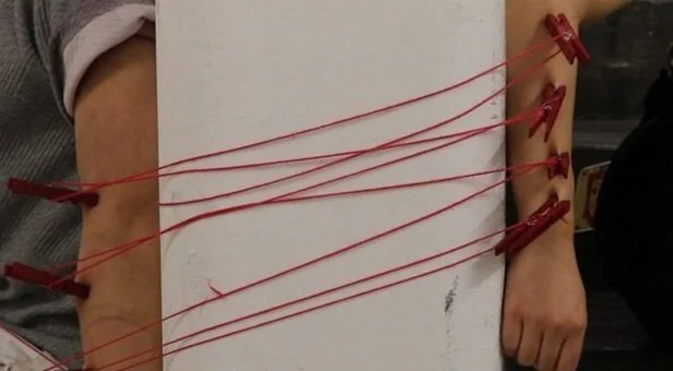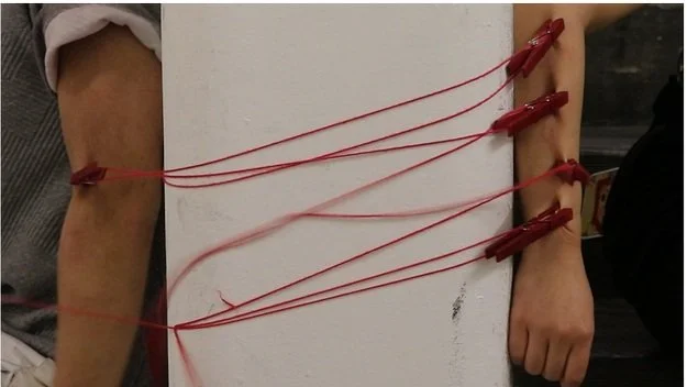 In the initial plan, we intended to directly use a needle through the performer's skin, making the resulting pain more palpable. For safety reasons, we opted for an alternative plan."