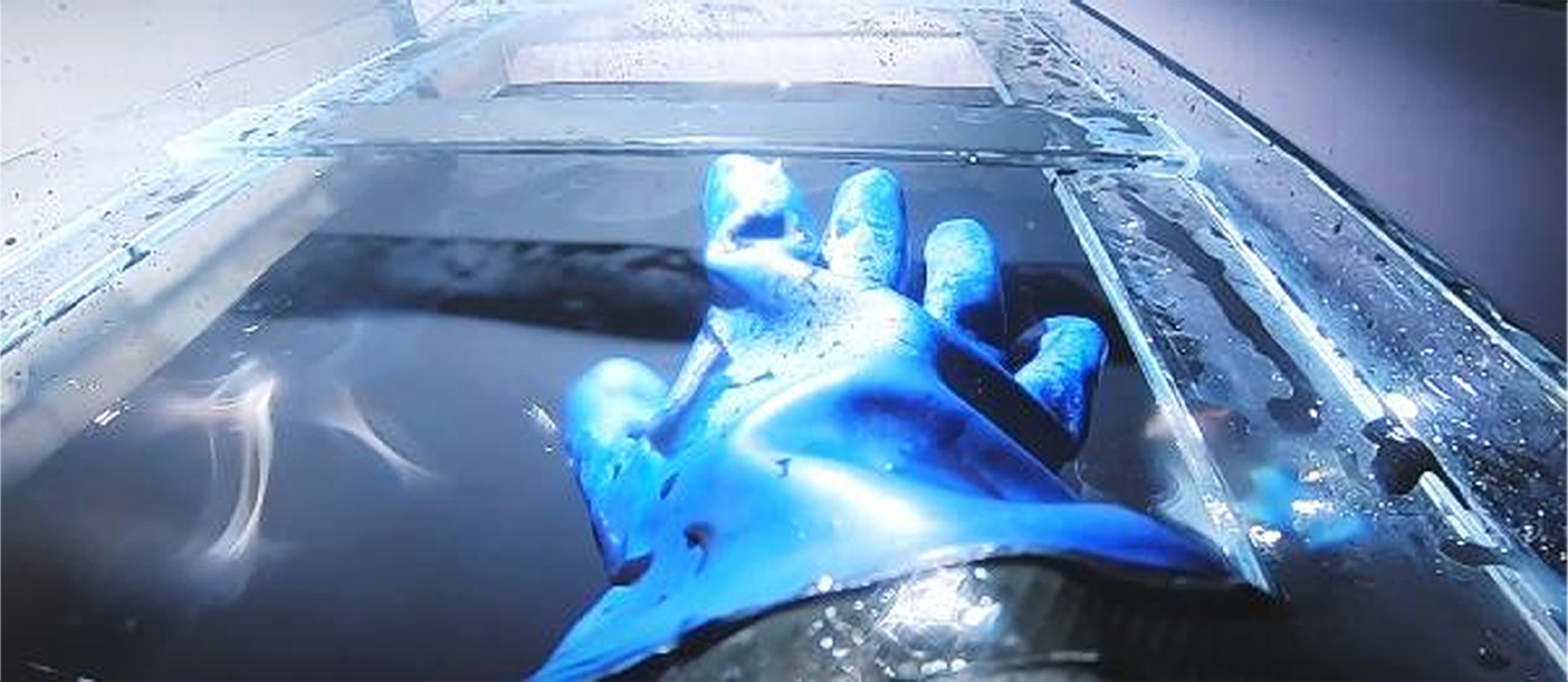 The observer can perceive the changes through the white shadows and constant sound sweeping across the tank wall, but cannot perceive the beginning and end of the change.